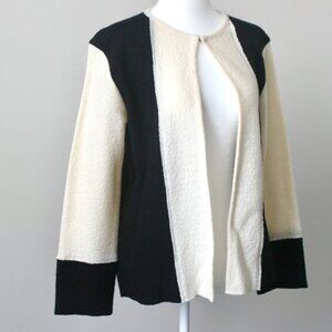NWT Kasper 100% Wool Cream Black Professional Sweater Jacket Petite Large