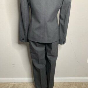 This classic gray pantsuit is a powerful addition to any professional wardrobe, combining timeless elegance with modern tailoring. The deep gray suit features a sharply tailored blazer with structured shoulders and a notched lapel, accentuating a sophisticated look. The matching trousers are high-waisted and have a straight-leg silhouette, elongating the legs for a sleek, flattering fit.