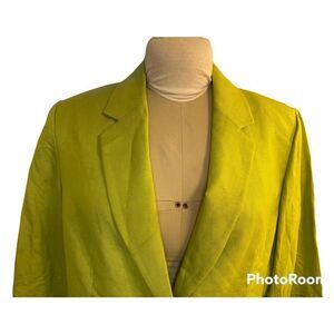 NWT Kasper Linen Blend Blazer Sz. 16P 3/4 Sleeves Lined Kiwi