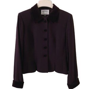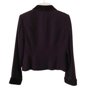 Absolutely beautiful special occasion suit with full-length skirt and fitted blazer. Accented with velvet collar, cuffs and buttons.