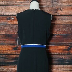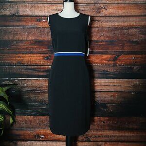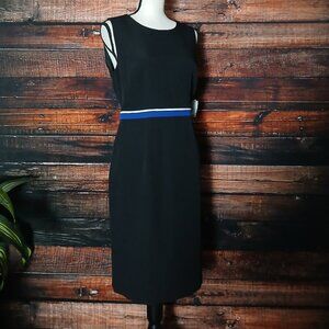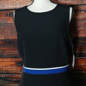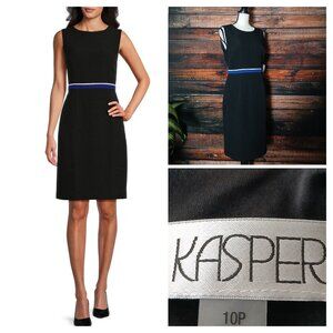 NWT Kasper Sheath Dress 10 Petite 10P Black Striped Waist Lined Zip Back