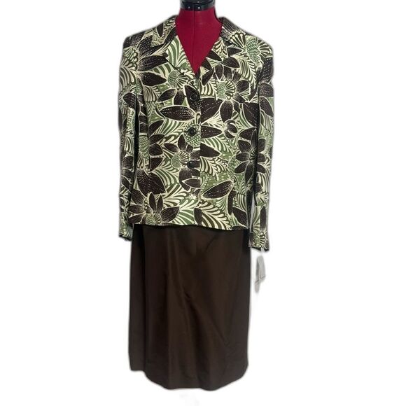 Kasper Skirt Suit Women's Size 16 Green & Brown 2-Piece Set Blazer & Skirt
