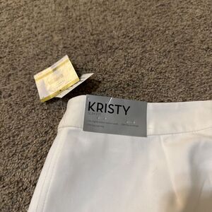 NWT Kasper Women White Kristy Slim Fit Trousers Front Pleat Pant Office Size 14