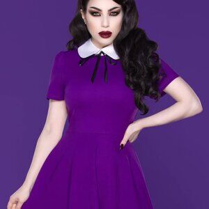 New with tags Katakomb Hayley Dress In Purple.Skater dress with collar top and ribbon tie,Zipper back.Size Large.These sold out fast and are no longer available.Gorgeous color and cut.Excellent new condition.Smoke and pet free.