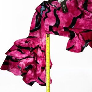 NWT Kate Hewko Runway to Reality Pink/Black Ruffled Sleeve Blouse Top SZ OS
