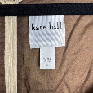 NWT Kate Hill Beige & Brown Lace Dress Bow Tie Waist Cottagecore Prairie Sz 14P