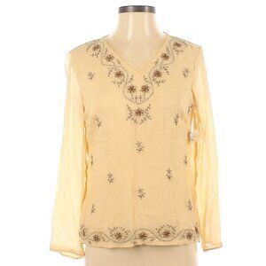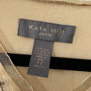 Beautiful Kate Hill Petites Moroccan Dreams Delicate Embroidered/Beaded V Neck 100% Silk Blouse