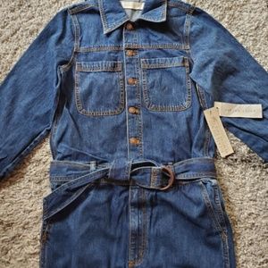 NWT Happy X Nature by Kate Hudson Denim Explorer jumpsuit in Ashbury wash denim. Size small. Brand new with tags! Two chest pockets and side pockets. Self belt. Button front, zip fly. Inseam 29 1/2". 100% Cotton Denim.