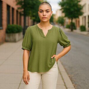 Add a pop of color to your wardrobe with this brand new Kate & Mallory textured short sleeve top in Petite XL. Featuring a rich green color and lightweight textured fabric, this top is perfect for casual wear or dressing up. New with tags and originally priced at $49.95, it's a stylish addition at a great value.