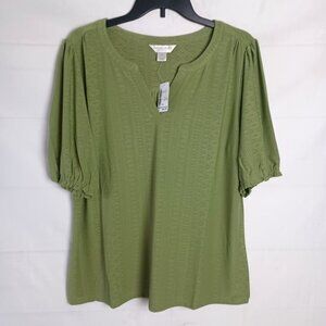 NWT Kate & Mallory Petite XL Green Textured Short Sleeve Top MSRP $49.95