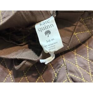 New with tags quilted bamboo joggers from Kate Quinn, fits babies 3-6 months. Chocolate brown with gold stitching, elastic waistband with decorative drawstring bow, cuffed. 96% viscose from bamboo/4% Lycra.