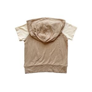 NWT Stylish short sleeve tee with a hood. Features a tan body and cream sleeves. Soft and comfortable fabric.