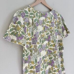 Kate Quinn women’s floral short sleeve shirt in green, purple, white and yellow colors. Size XS.