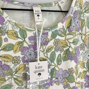 NWT Kate Quinn Women’s Floral Short Sleeve Top in Green Purple White Size XS