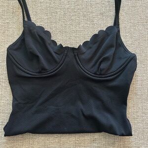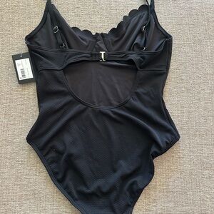NWT Kate Spade Black Low Tide Scallops Underwire One Piece Swimsuit L $150