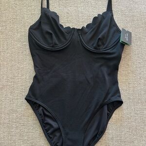 NWT Kate Spade Black Low Tide Scallops Underwire One Piece Swimsuit L $150