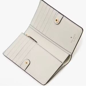 This elegant Kate Spade wallet showcases a striking black and white cityscape design, highlighted by a vibrant yellow taxi motif. Crafted with a minimalist aesthetic, it captures the essence of New York City's iconic skyline. Perfect for those who appreciate a blend of sophistication and playful artistry.