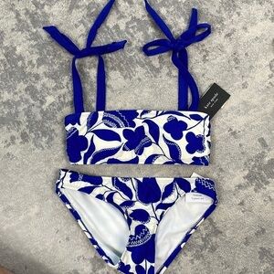 NWT Kate Spade Blue Berry Shoulder Tie Bikini Swimsuit Floral Sz XS