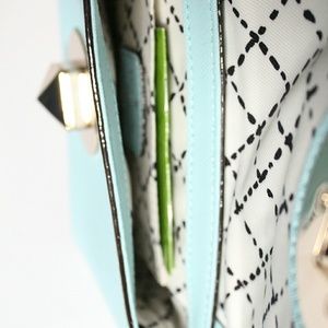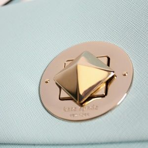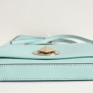 NWT Kate Spade B;ue Crossbody Purse. Newbury Lane Sally, In a beautiful soft blue color. This bag features saffiano leather quilted lined interior Gold tone hardware. Measures 4.9"H x 7.4" W x 1.1"D. Features adjustable strap with 22" drop NOTICE Item does not ship with dust bag