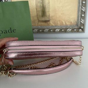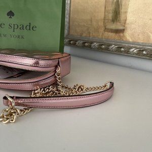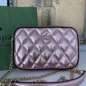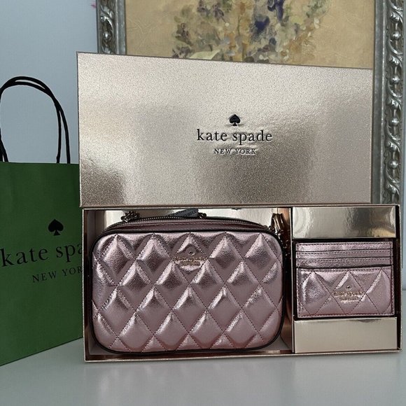 NWT Kate Spade Boxed Quilted Metalic Leather Crossbody Card Case Set In Pink