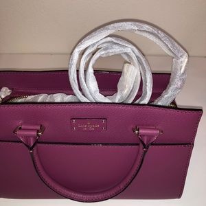 Gorgeous Rioja cranberry color Small Caley Grove Street leather bag by Kate Spade. Features a removable cross body strap with gold feet and hardware. This is a very nicely structured bag with beautiful smooth leather.
