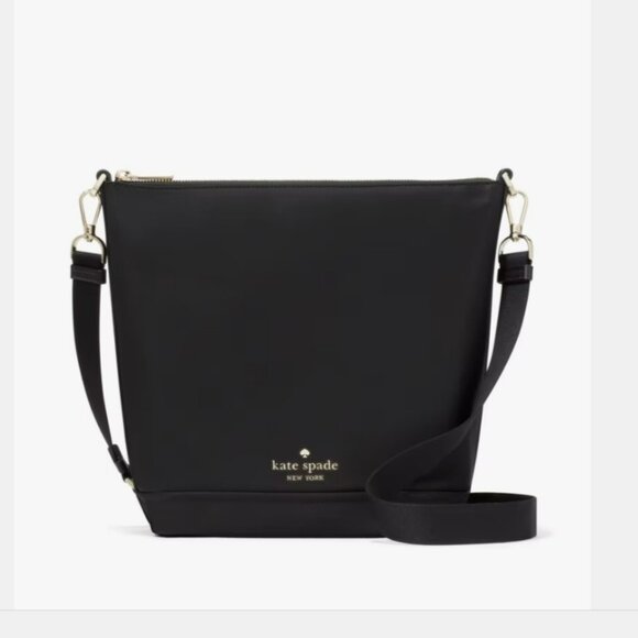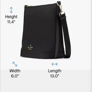 The NWT Kate Spade Chelsea Large Duffle Crossbody in black is a stylish and versatile accessory designed for women. This trapezoid-shaped bag features a zip closure, gold hardware, and a detachable crossbody strap for added convenience. Perfect for various occasions such as travel, parties, casual outings, and work, this large-sized bag with a solid black exterior and jacquard lining is both fashionable and practical. The Chelsea model from Kate Spade New York combines a designer touch with a spacious interior and adjustable strap, making it a must-have for any fashion-forward woman.