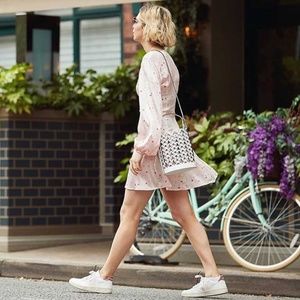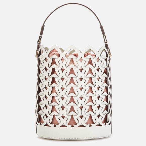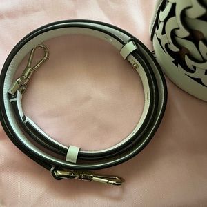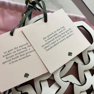 This is the small size (not the medium). NWT, never used, no blemishes. White leather with interlocking spades, and a blush pink inner bag. Dust bag also included. Can be worn on the elbow or used as a crossbody (long strap included). Perfect for the Spring and Summer! Open to offers :)