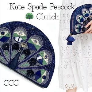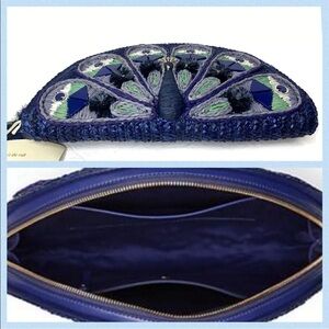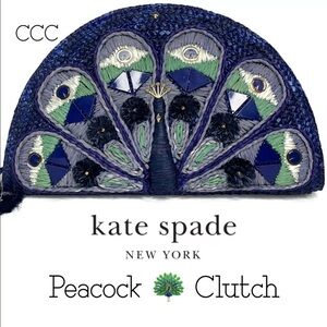 NWT Kate Spade Full Plume Embroidered Straw Peacock Clutch Peacock Wicker Bird. Condition is "New with tags". Shipped with USPS Priority Mail.