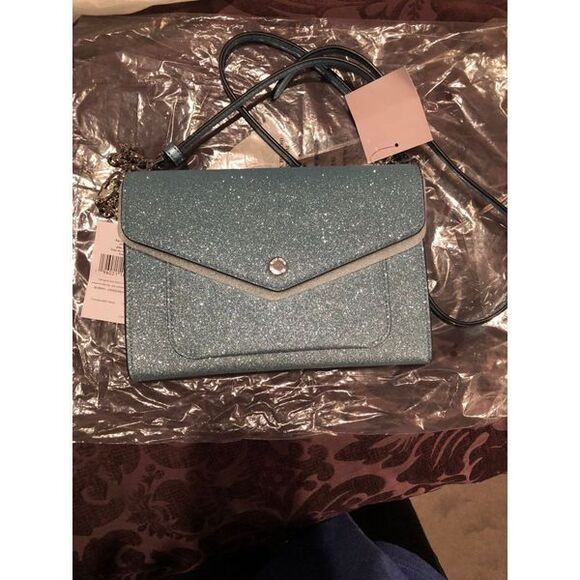 NWT Kate Spade Flap Crossbody in Frosty Sky glitter fabric. Retail $279. Please ask all questions prior to bidding. All bids are binding.