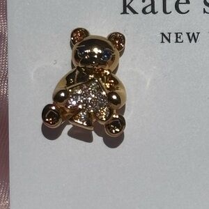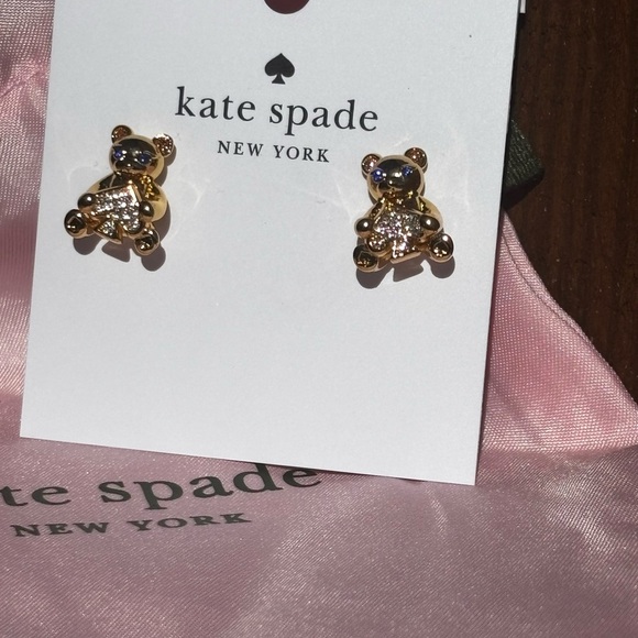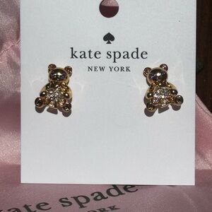 NWT! Kate Spade Gold Bear Spade Rhinestone Blue Eye Earrings