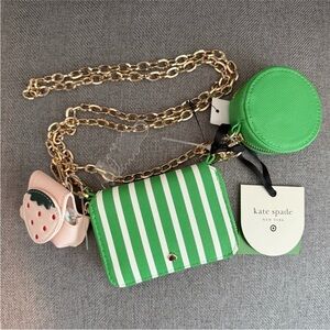 NWT Kate Spade Green and White Striped Bag with Gold Chain