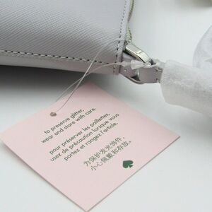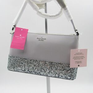 This elegant Kate Spade crossbody features a sophisticated light gray design with a striking silver sparkle accent. Its structured shape and dual strap options make it a versatile accessory for any occasion. The silver-toned hardware adds a touch of modern glamour to this classic piece.