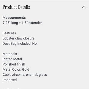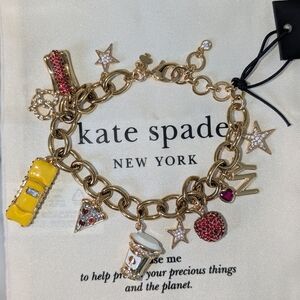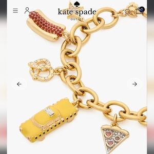 ๐ฝShow your love of New York City with Kate Spade New Yorks gold bracelet featuring playful sparkling charms all representing NYC. An ๐ apple, โค๏ธ NY, ๐ pizza, a ๐ฅจ, โ coffee, a yellow taxi ๐, a hot dog๐ญ, and 2 sparkling stars for Broadway. Adds a whimsical touch to any look. This is from the Hit the City collection. Brand new with tag in bracelet size pouch. Would make a great gift for that person who loves NYC. ๐ฝ