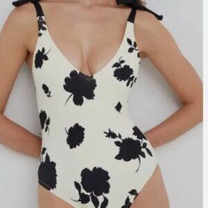 NWT! Kate Spade Ivory & Black Floral Shoulder Tie One Piece Swimsuit NEW!
