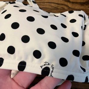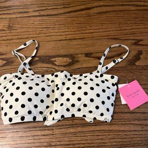 NWT Kate Spade Lia Logo Polka Dot Bikini Top White Black Spell Out Medium