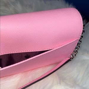 Chain and pink leather Crossbody strap that is completely Removable to transform to Clutch