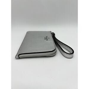 NWT Kate Spade Lucy Metallic Silver Small Leather Zipper Wristlet KJ031