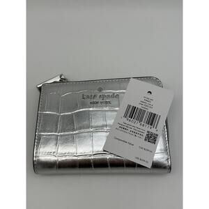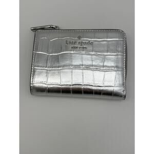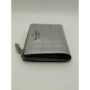 NWT Kate Spade Madison Silver Metallic Croc Small Zipper Pocket Purse Wallet
