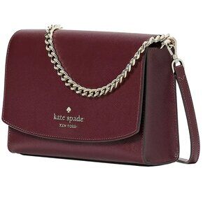 Step out in style with this authentic Kate Spade New York Convertible Crossbody Purse (Style WKR00119). Crafted from luxurious burgundy saffiano leather, this structured flap bag features elegant gold-tone hardware and the iconic Kate Spade New York logo on the front.