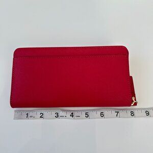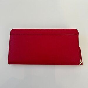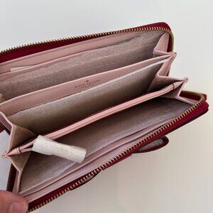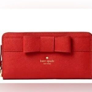 kate spade wallet, bow leather wallet, zip around wallet, saffiano wallet, red designer wallet, women's wallet, kirk park lacey, stylish wallet, leather accessory, premium wallet, kate spade new york, red wallet gift, saffiano leather accessory, date night, party, event, girls weekend, summer, winter, fall, spring
