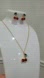 Chic necklace and earrings set with vibrant red and green stones. Gold accents add a luxurious touch.