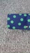 • Design: It features a navy blue cloth exterior with green polka dots and gold-tone snaps for closure and detailing.