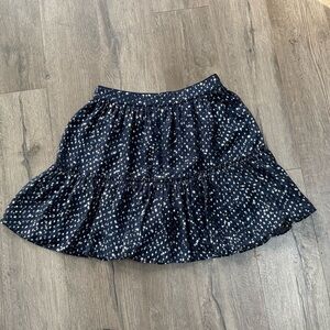 This is a new with tags Kate Spade New York 'Night Sky Lurex Dot Skirt' in rich navy, star bright print, women's size 4. This short skirt is in excellent new condition. This skirt is lined with tiers and the material is 93% silk, 7% metallic. Retail: $298.