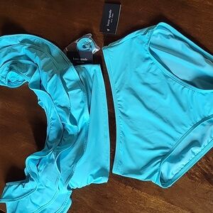 NWT Kate Spade Ruffle River Blue Off Shoulder Wireless Ruffle Bikini Set