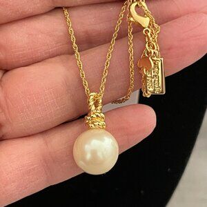 NWT Kate Spade Sailor's Knot Faux Pearl Pendant Gold Chain 17-20" Necklace $70