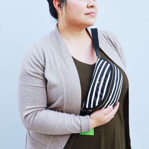 Adjustable removable leather shoulder strap drop: 19" to 22" approx.