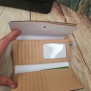 tri-fold wallet with snap closure, features 14 credit card slots, 2 billfolds and exterior zip pocket
