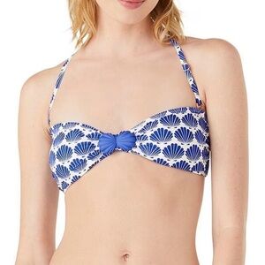 NWT Kate Spade Shell Print Bikini set. Sweetheart neckline, lined, bandeau bra top with removable bra cups. Also has blue shell hardware embellishment. Back clasp closure. High leg, cheeky, lined bottom with medium coverage.