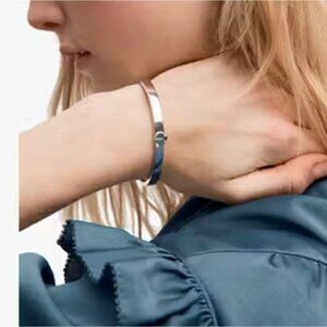 NWT Kate Spade Silver Heritage Spade Logo Metal Button Bangle Bracelet Dust Bag
