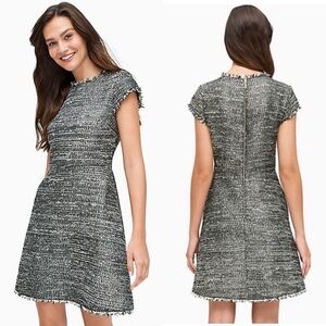 NWT Kate Spade Size 0 Party Tweed Dress Gray Gold Short Sleeves A-line $429